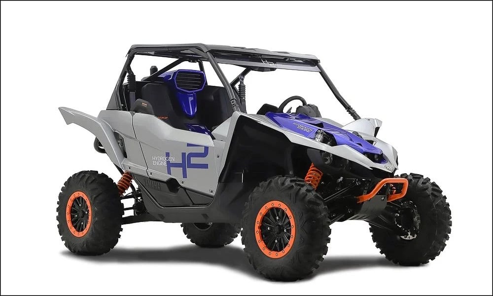 Finally, Yamaha presented the YXZ1000R ATV. Instead of yet another electric drivetrain, it’s powered by a direction-injection, hydrogen-burning ICE for zero carbon-dioxide emissions.